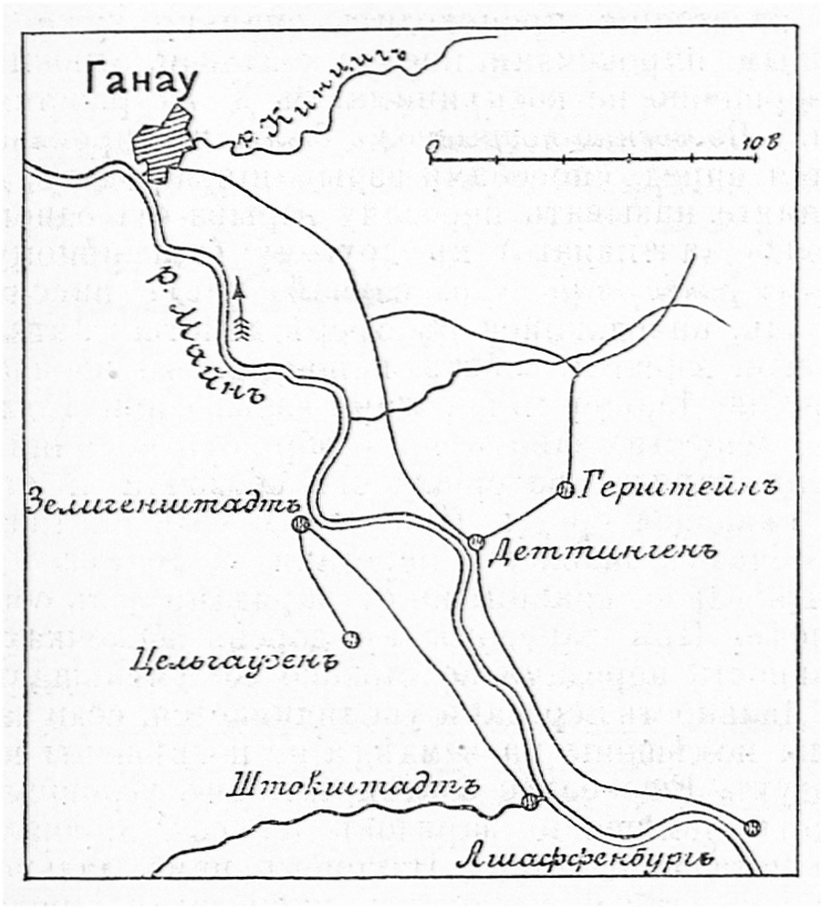 Район военных действий пятидневного боя 19-23 апреля 1809г.