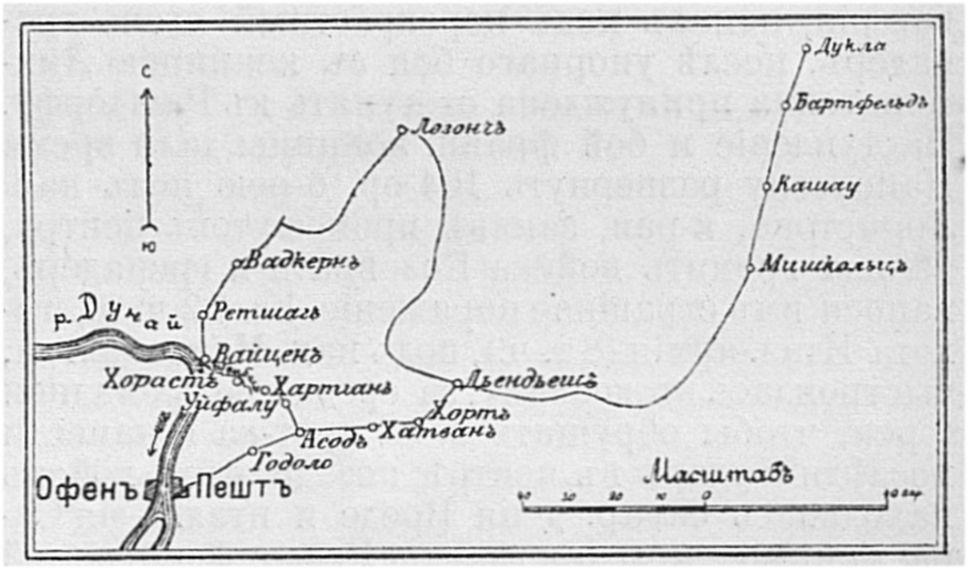 Район столкновения русской армии с венгерскими войсками 3 и 5 июля 1849 года у города Вайцена