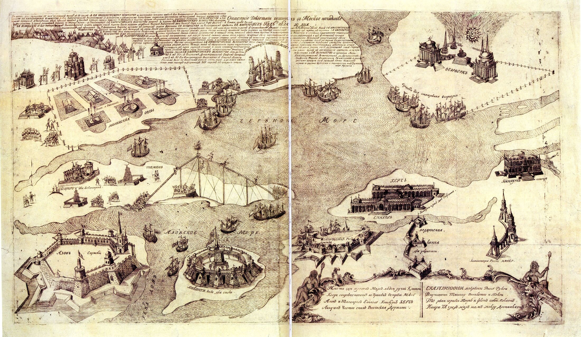 Панорама Ходынского поля с планом расположения сооружений к празднованию победы над Турцией в 1774 году