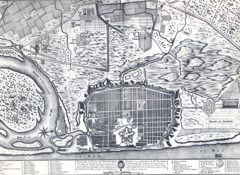 Боскауэн решил не искушать судьбу и отплыл к Калькутте, где принял на борт дополнительные войска, а потом проследовал к Пондишери. Решение это может вызвать некоторое удивление, ибо Пондишери был достаточно хорошо укреплен французами, о чем англичане, конечно же, знали. Тем не менее 15 августа британцы, имея в качестве десантников 5220 солдат, показались у столицы Французской Индии. В Пондишери при приближении вражеской эскадры вспыхнула паника, толпы беженцев из черного города рванули к городским воротам. Но сам Дюпле и администрация не поддались смятению, они знали, что город очень хорошо укреплен. Действительно, и Ленуар, и Дюма, и сам Дюпле выстроили значительные фортификационные сооружения. Город окружали две стены – первая, охватывающая «черный» и «белый» город, опиралась на десять бастионов; цитадель представляла собой звездообразный форт, построенный по системе Вобана, и прикрывала центр города, где располагались администрация колонии и дома богатых купцов. Обе стены были огорожены рвом, наполненным водой, с подъемными мостами. Город имел 130 орудий различных калибров и около 5000 человек гарнизона.