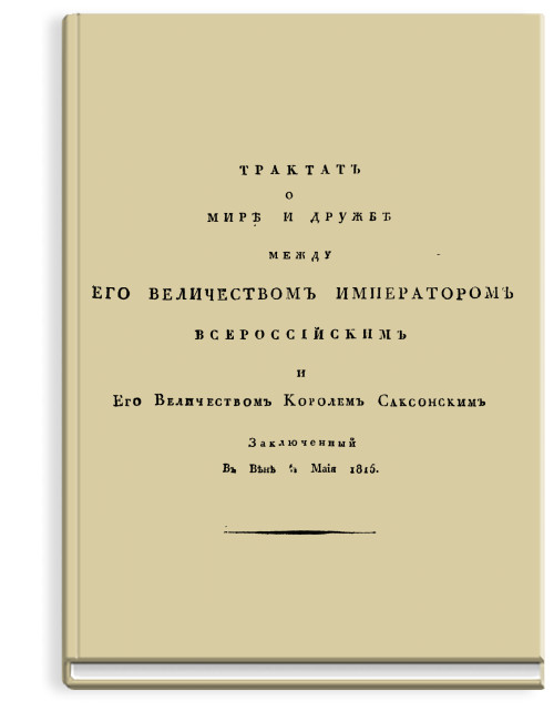 Трактат о мире и дружбе между его величеством императором всероссийским и его величеством королем саксонским заключенный в Вене 6/18 маия 1815.