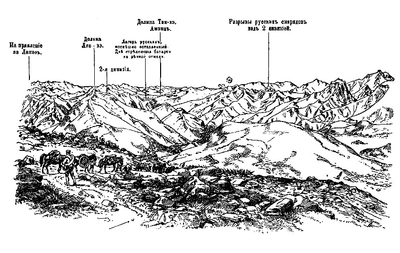 «...Приблизительно в то же время произошло и занятие японцами северной половины Хунжалинского кряжа. При занятии этого пункта произошло приблизительно то же, что было и на Макураяме, только несколько другого характера. Там аванпосты просто проспали неприятеля, здесь же не понимали, что перед ними происходит. Ждали неприятеля с востока и потому все внимание было обращено туда, бригада же Кигоши стала подниматься по отвесным скалам с севера, не допуская возможности серьезного движения противника с этой стороны, — наши сторожевые посты приняли это за какую-нибудь мелкую разведку неприятеля и не подняли тревоги. Японцы, таким образом, в мертвой тишине, без выстрелов, продолжали продвигаться впереди, наши же посты отходили назад, изредка постреливая. Взобравшись на вершину, японцы все так же молча продолжали свое движение, сметая все, что попадалось на их пути. К рассвету они достигли самого узкого прохода и тут уже были остановлены несколькими нашими стрелками и дальше уже продвинуться никак не могли. Как мы уже знаем, бой 13 августав 10-м корпусе окончился отступлением к Анпину, но при этом отступлении нам надо было перебраться через Танхе, которая вследствие шедших все время дождей сильно поднялась и броды сделались почти не проходимы, мост же имелся только один. На наше счастье у японцев не было в этом месте достаточно полевой артиллерии, так как большая часть артиллерии 2-ой дивизии ушла с гвардией, а артиллерия 12-й дивизии стояла очень далеко и не могла обстреливать переправы, продвинуть же орудия без постройки дорог оказывалось совершенно невозможным. Если бы японцам удалось сосредоточить артиллерийский огонь по месту переправы, то на Танхе повторилась бы та же история, что и с французами на Березине. Японская пехота начала было уже спускаться к реке на расстояние ружейного выстрела, но в это время выехали две наши батареи и снялись с передков на плоском песчаном берегу реки и своим огнем остановили движение, как 12-й японской дивизии, так и 2-й. Мы воспользовались этим обстоятельством и быстро переправили все наши части на левый берег Танхе. На другой день, т. е. 14-го августа, положение гвардейской дивизии настолько улучшилось, что она получила возможность продвинуться на линию Кофынцзы - Чандяопу, но генерал Куроки все-таки еще не был доволен этим и решил лично отправиться в Ляндянсан, чтобы быть ближе к гвардии. Генерал Гамильтон приводит очень интересные обрывки разговоров об общем ходе дел, которые ему удалось слышать во время остановок и привалов. Из этих разговоров ясно усматривается, насколько во многие моменты ляоянских боев наш враг находился в опасном положении и как мы могли бы этим воспользоваться, если бы наши руководители обладали бы решимостью, наблюдательностью и пониманием дела. Вот что мы у него читаем: «Неприятелю представлялось несколько удивительно благоприятных случаев для атаки обоих флангов, но он упустил их вследствие недостатка инициативы. На нашем левом фланге он проявил некоторую энергию и поставил нас в весьма неприятное положение. Маршал Куроки предвидел эту опасность и взял на себя смелость высказать маркизу Ойяме настойчивое мнение, что манджурская армия должна выделить несколько частей со специальным назначением наблюдать за нашим левым флангом, во время выполнения возложенного на нас 