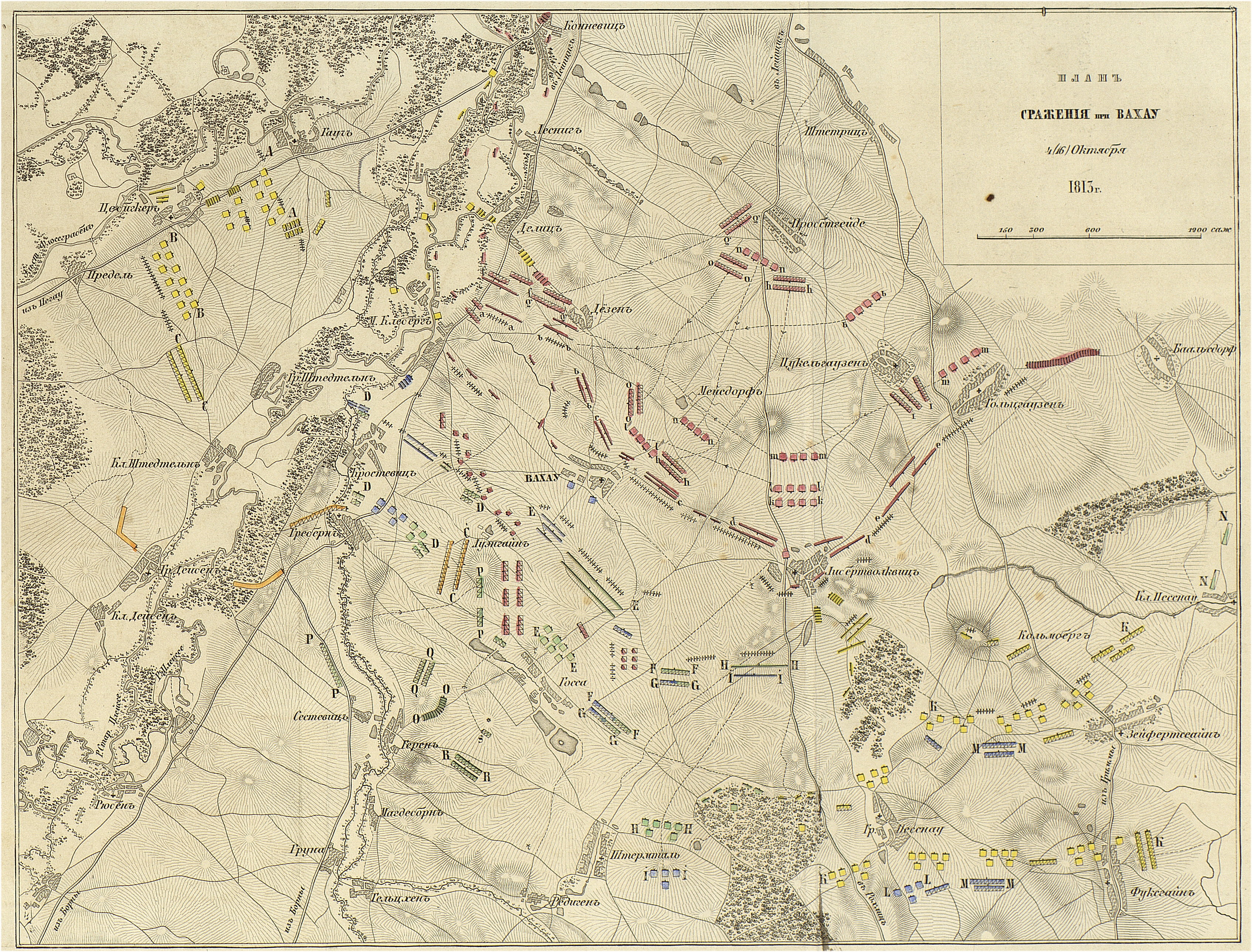 Храбрые фузелеры в половине 10-го ворвались в селение, и хотя были выбиты оттуда, однако же, с содействием прочих клюксовых войск, удерживались в кустах близ деревни до трех часов пополудни. Получив приказание овладеть селением, русские не только выбили неприятеля из Вахау, но преследовали его до самых дул орудий стоявших на высотах.