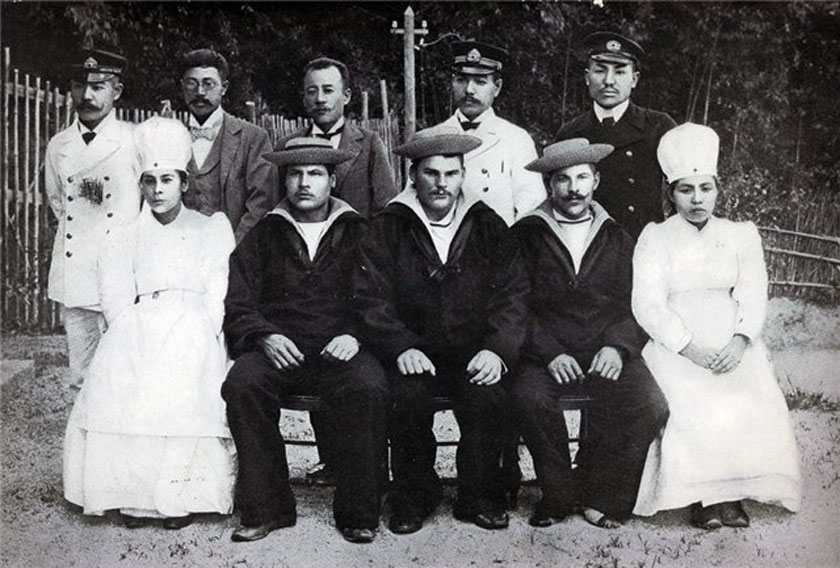 Реабилитация раненых русских солдат. Их фото с японскими медсестрами и врачами в Мацуяме 1905 г. Автор неизвестен Альбом (№ 164) Из собрания РГАКФД Фрагмент. Смотреть полностью.