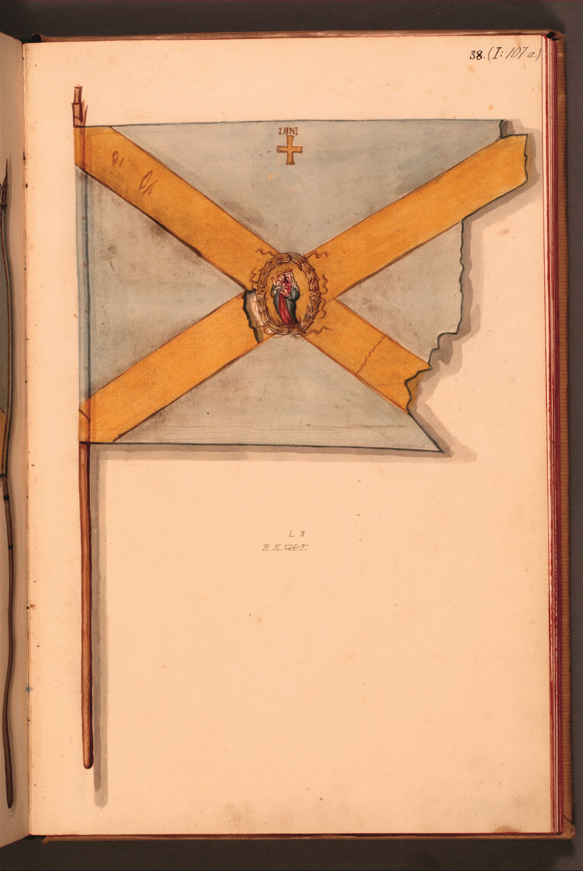Ротное знамя пехотного полка гвардии Его Королевского Величе- ства полковника фон Людинсгаузен-Воль- фа, до 1655 г. (аверс и реверс) П.