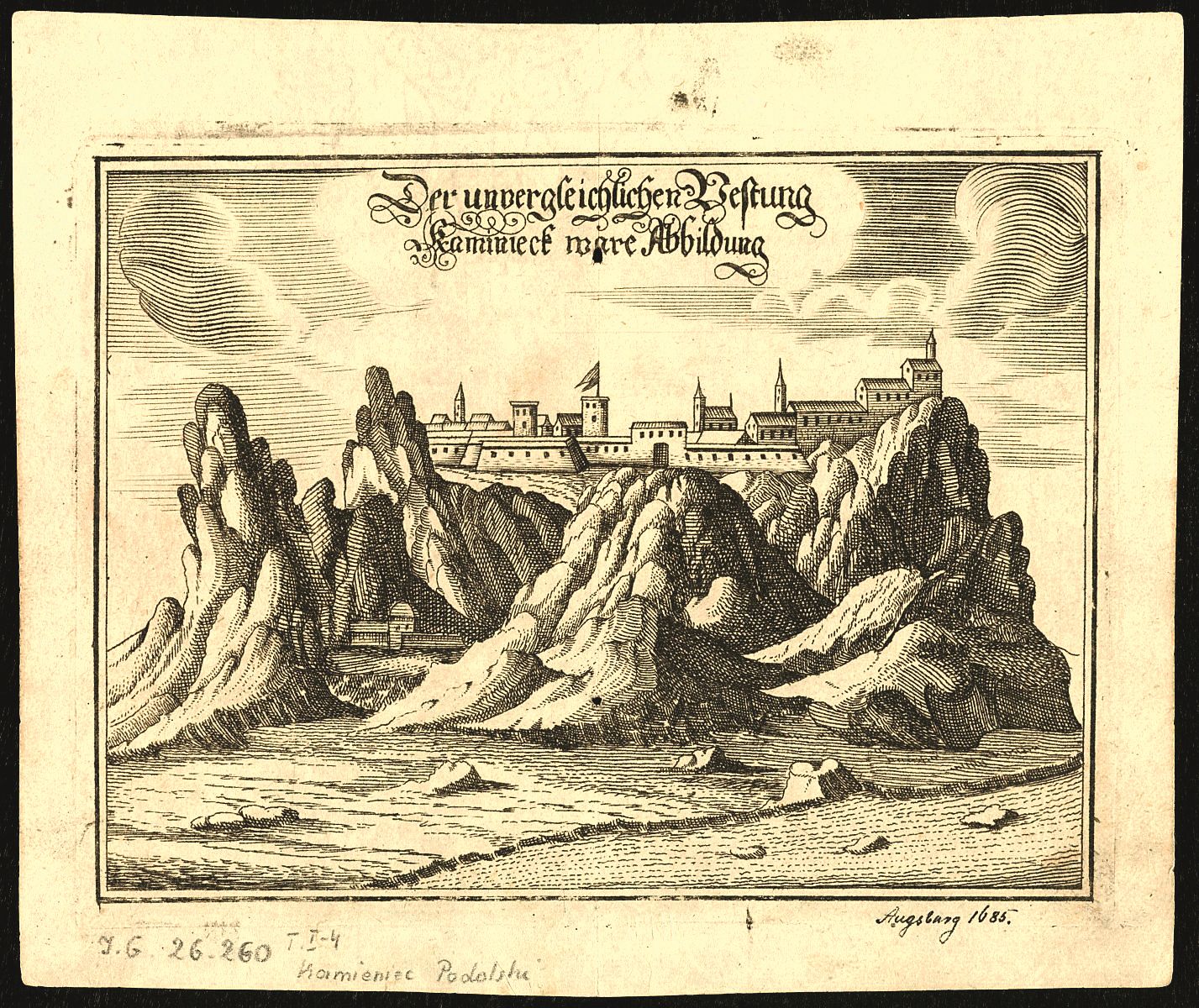 Гравюра неизв. автора «Вид на несравненную крепость Каменец». 1685 г.