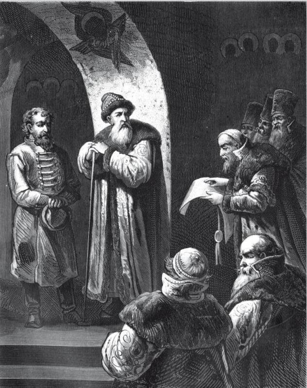 Иван Васильевич Грозный слушает письмо Курбского, доставленное Василием Шибановым.