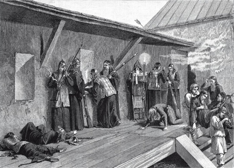 Защита Троице-Сергиевой Лавры монахами от поляков.