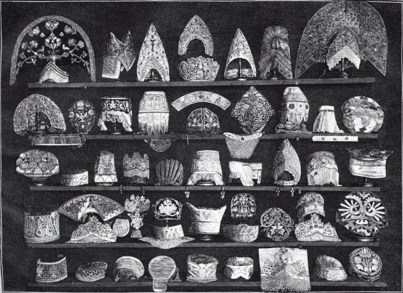 Древние кокошники и прочие женские головные уборы.