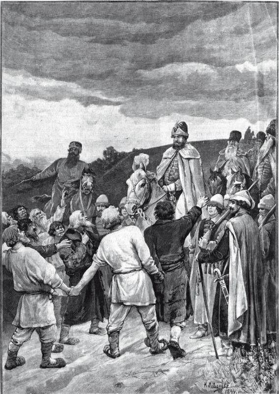 Подмосковные крестьяне прриносят жалобу на притеснения бояр царю Алексею Михайловичу при возвращении его с богомолья от Троицы.