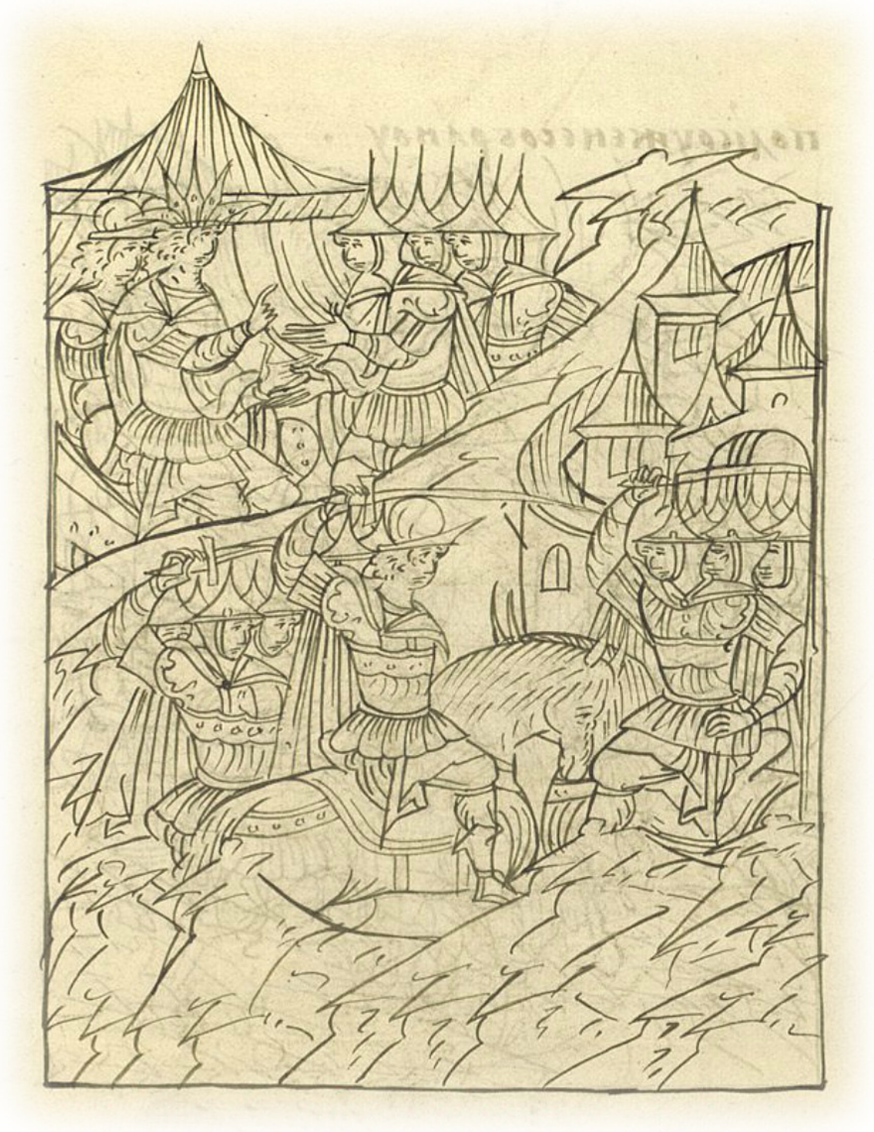 Языки говорят воеводам царя Ивана Васильевича, что магистр окопался большим рвом вокруг города Рындола, бьет из пушек и пищалей и приступает к Рындолу.