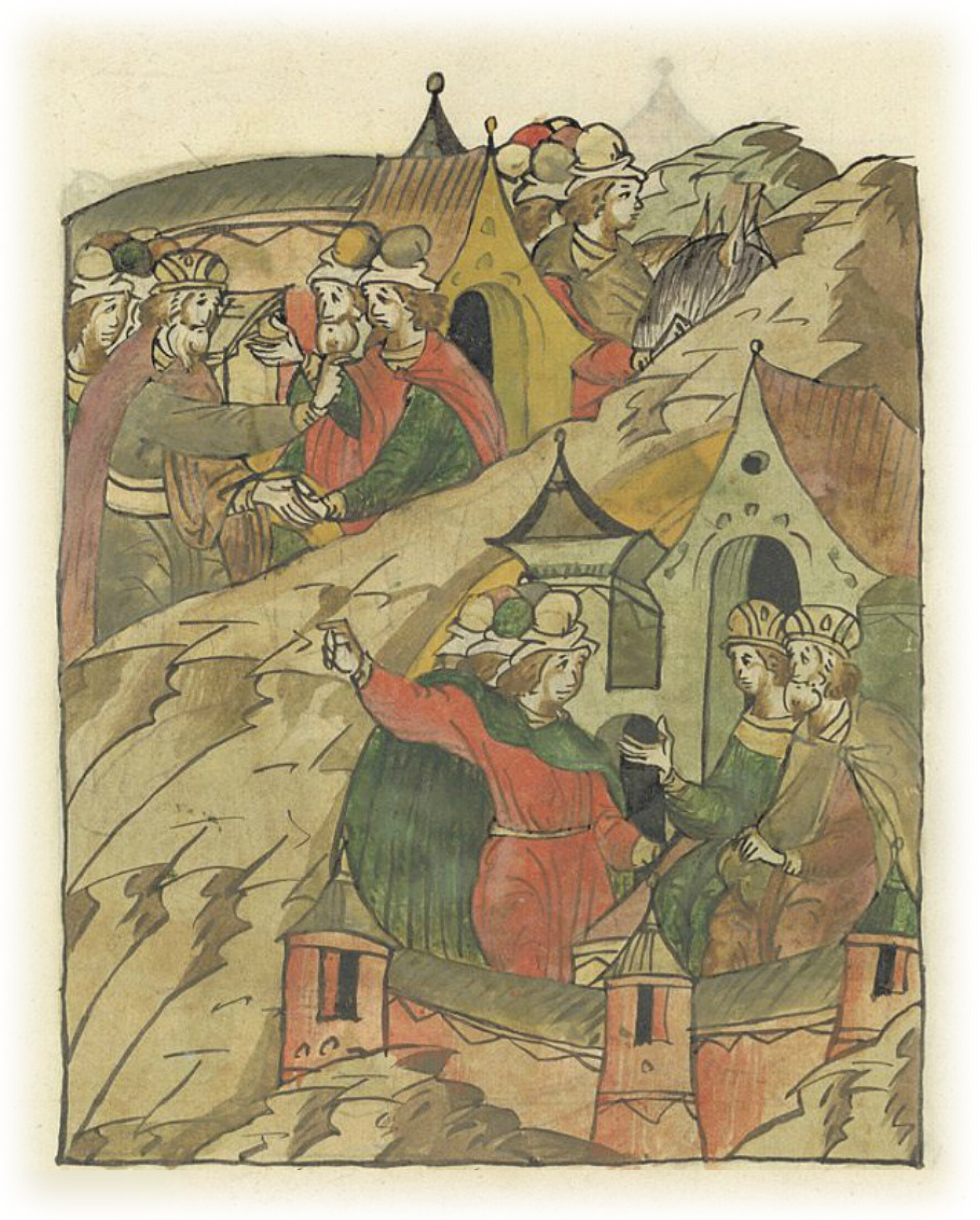 Ругодивские посадники Яким и Захар приезжают в Москву. Воеводы царя Ивана Васильевича Алексей Адашев и Иван Михайлов сообщают им, что государь пожалует их, если сдадут его воеводам помимо Ругодива Вышгород.