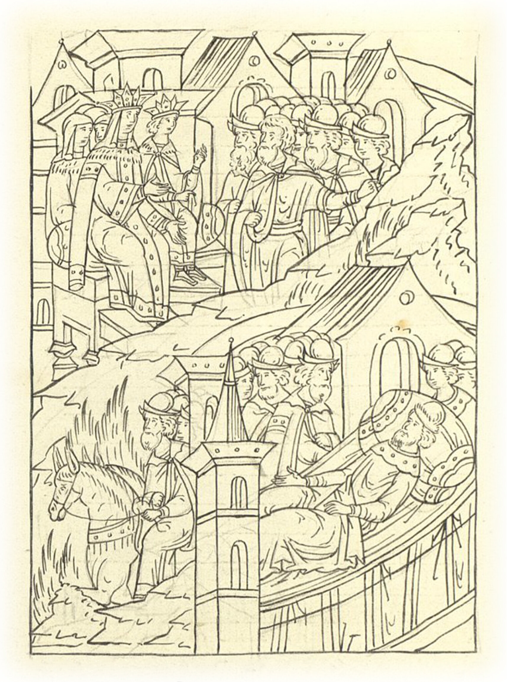 Ругодивские посадники Яким и Захар приезжают в Москву. Воеводы царя Ивана Васильевича Алексей Адашев и Иван Михайлов сообщают им, что государь пожалует их, если сдадут его воеводам помимо Ругодива Вышгород.
