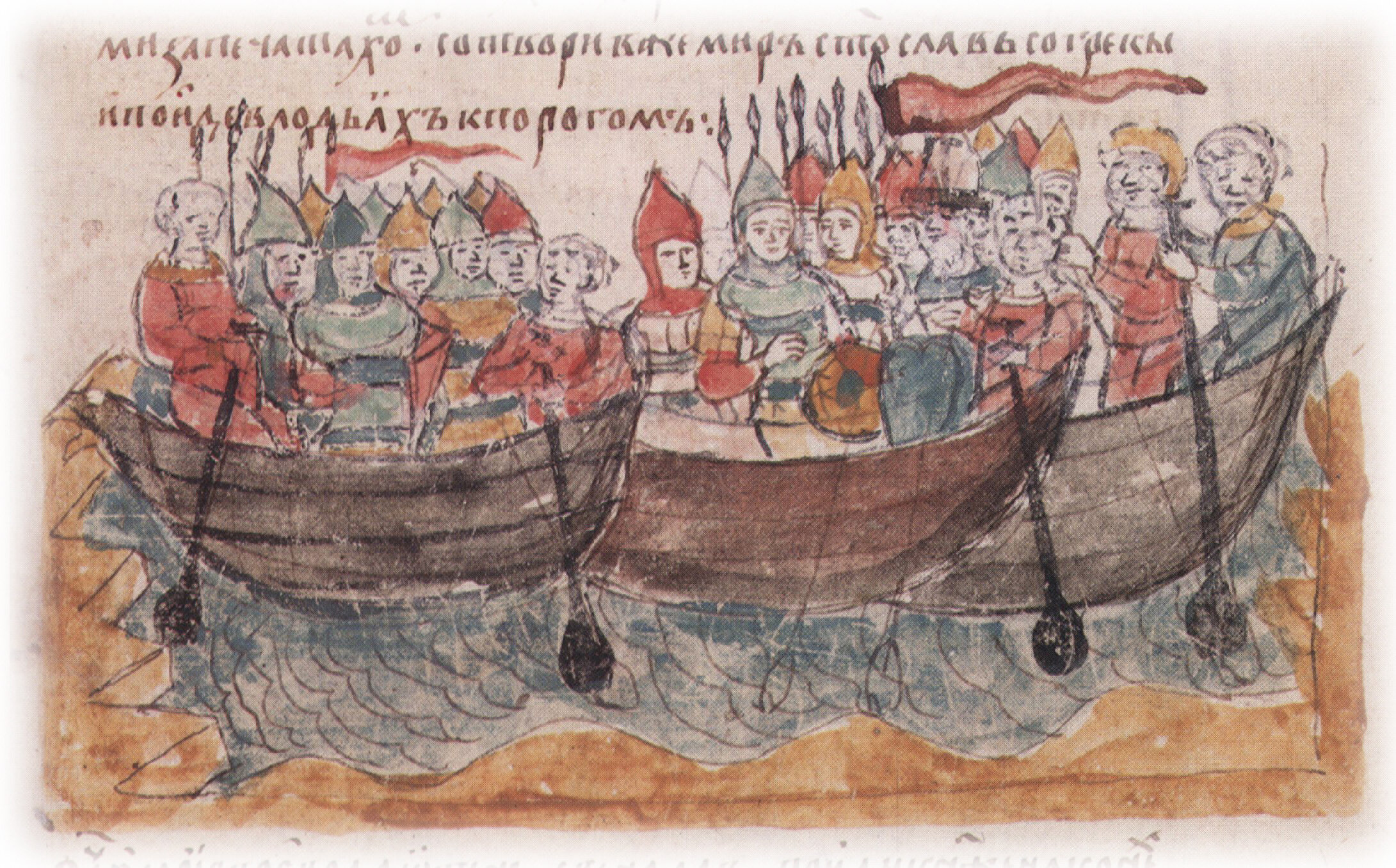 "Сотворив же мир Святославь со грекы, и поиде в лодьах к порогом"