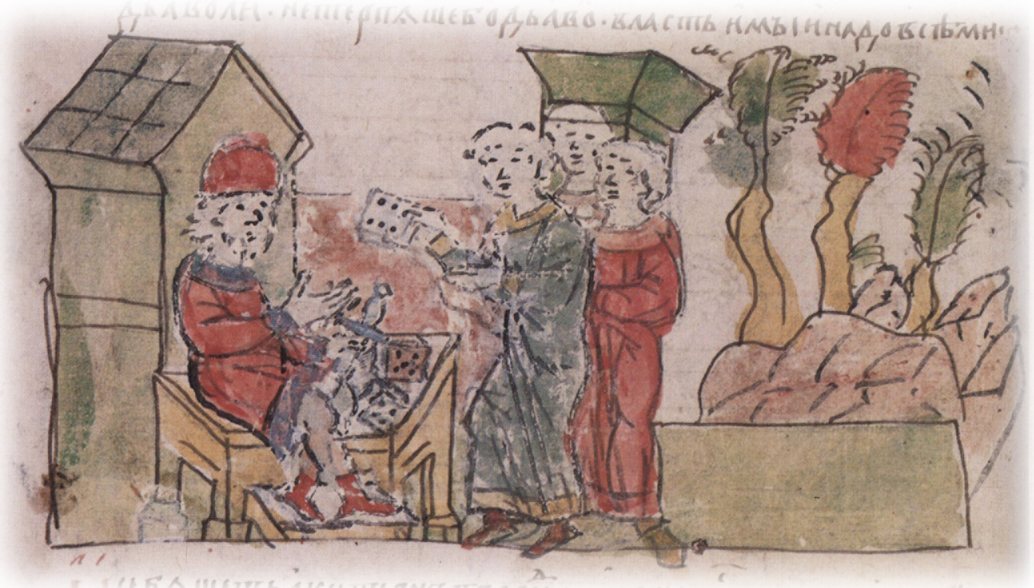 Метание жребия игральными кубиками боярами Владимира Святославича для определения жертвы языческим богам