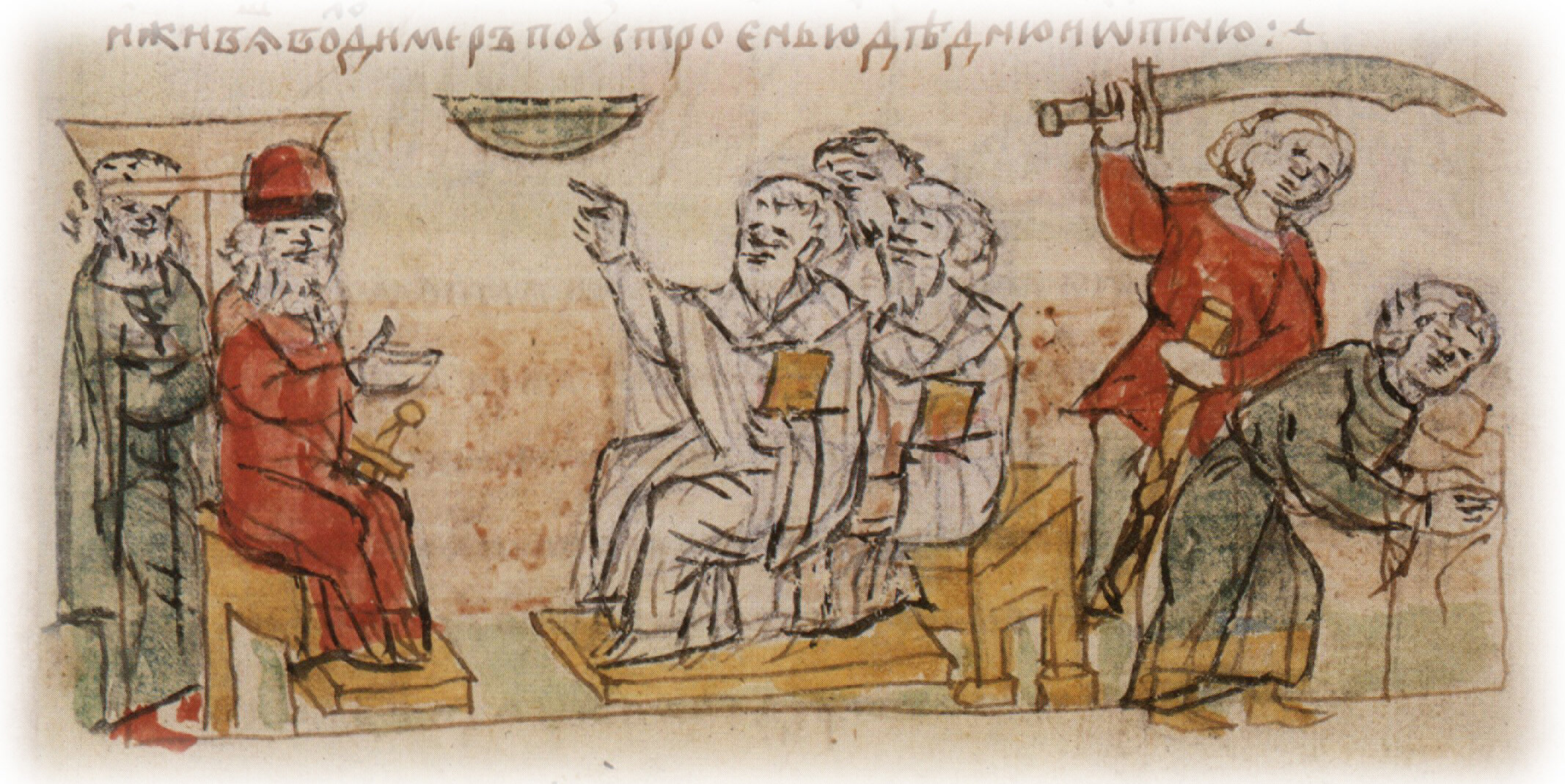 Совет Владимира Святославича с епископами и старцами о наказании разбойников; казнь разбойников по повелению Владимира.