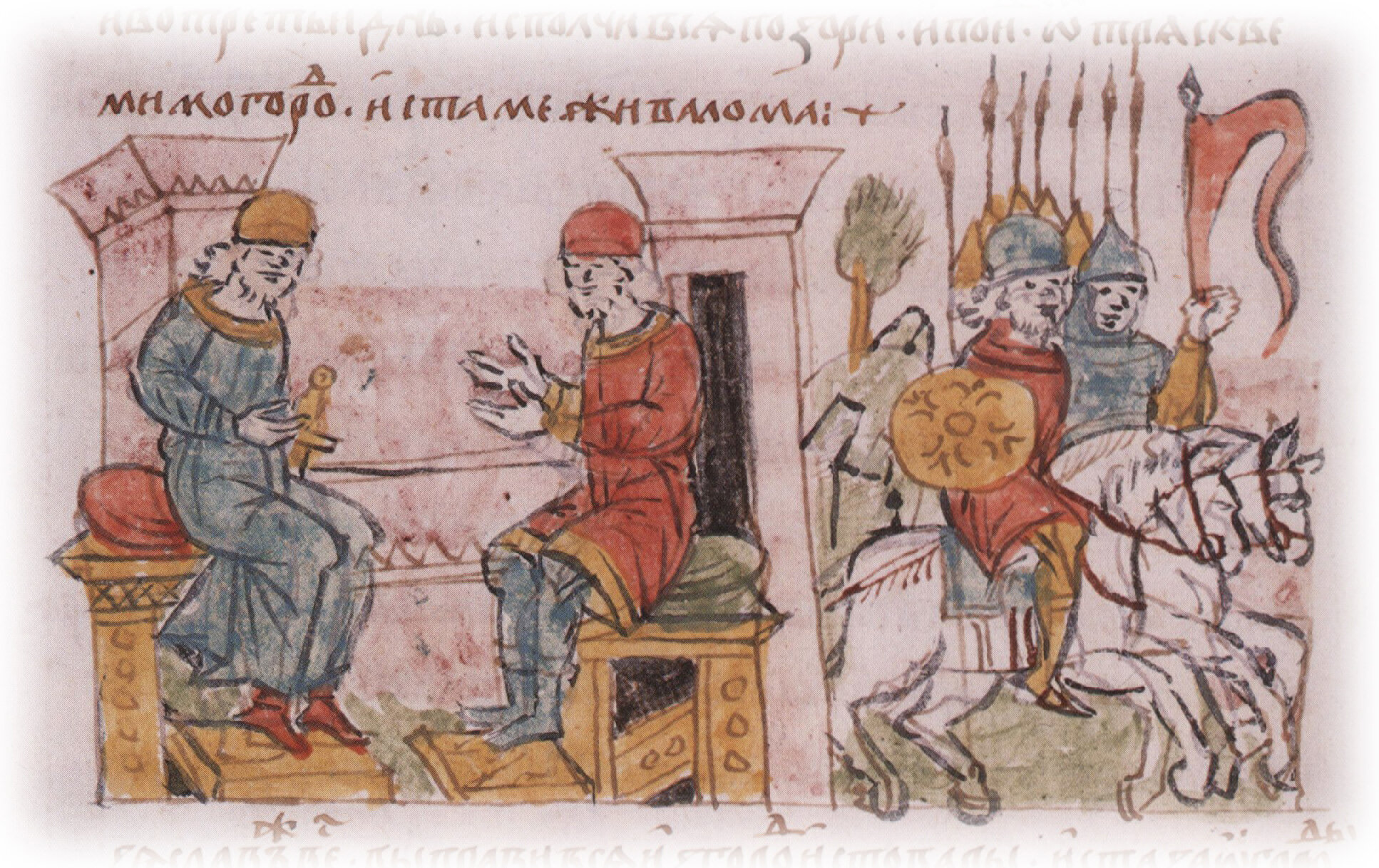 "...и прииде к нему Изяслав Давыдовичь в помощь. И стоя Гурги 3 дни и во третьи день исполчився по зори и поиде от Тряскве мимо города и ста межи валома".