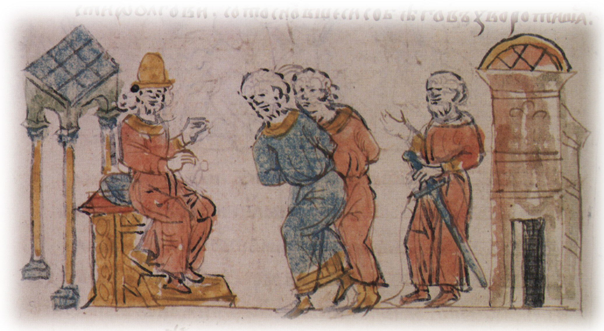 Пленение половецких послов и привод их к Ярополку Владимировичу Переяславскому.
