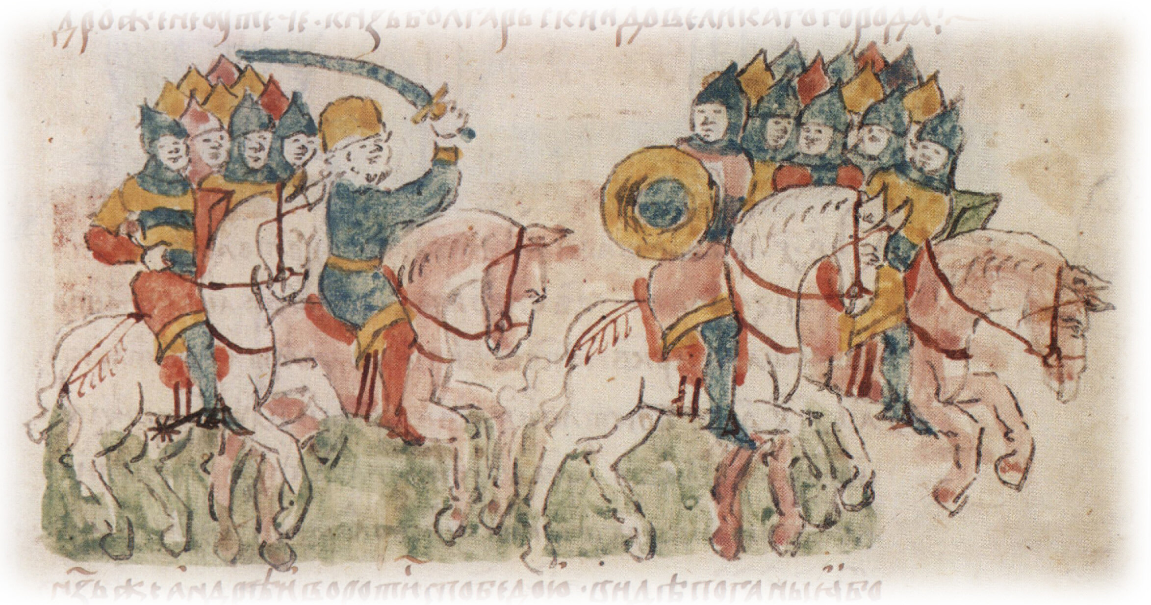 "В лето 6672. ...иде князь Андрей на болгары... И поможе им Бог и Святаа Богородица на болгары... но одва в мале дружине утече князь болгарьский до Великаго города".