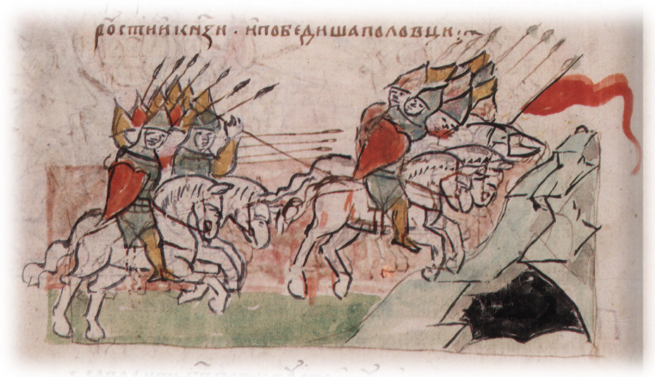 "В лето 6575. Приидоша иноплеменници на Рускую землю, половци мнози... и побегоша рустии князи, и победиша половци".
