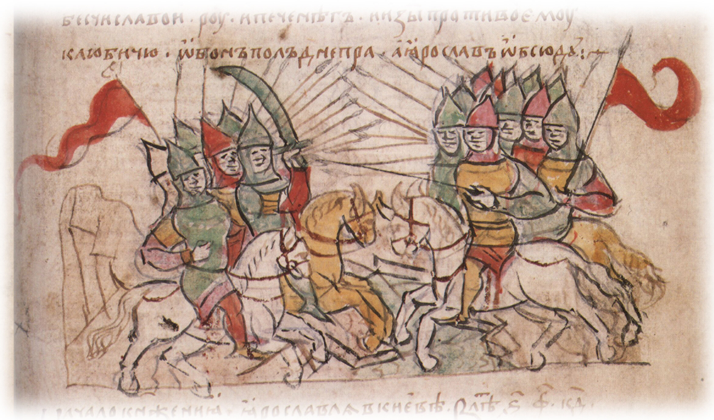 172 "В лето 6524. Приде Ярослав и ста противу обапол Днепра, и не смеяху ни ти на сих, ни си на них, и стояша за 3 месяци противу собе".