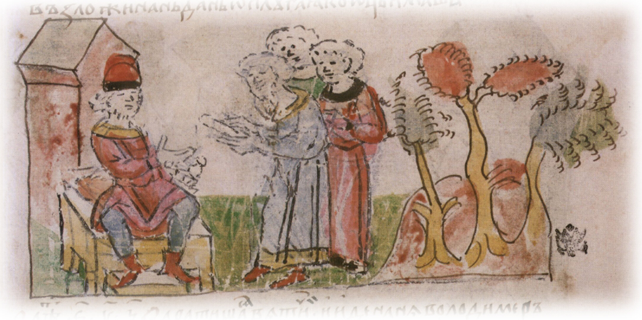 Арциховский А. В. Древнерусские миниатюры как исторический источник. М./1944. с. 13, 14; Подобедова О. И. Миниатюры русских исторических рукописей. К истории русского лицевого летописания. М., 1965. с. 60.