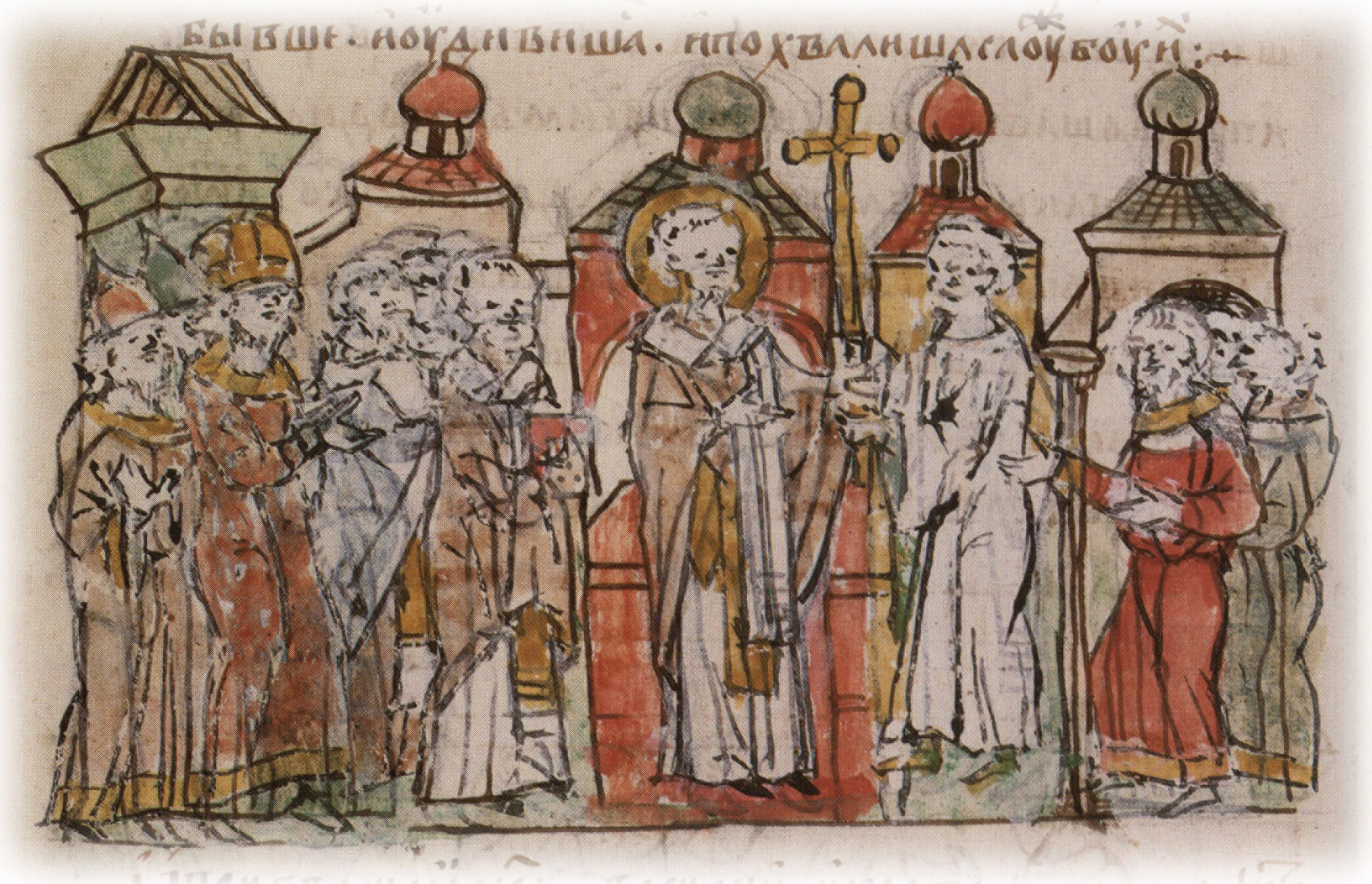 Присутствие посланцев Руси в одной из церквей Царьграда на богослужении, изумившем их красотой обрядов и пения.