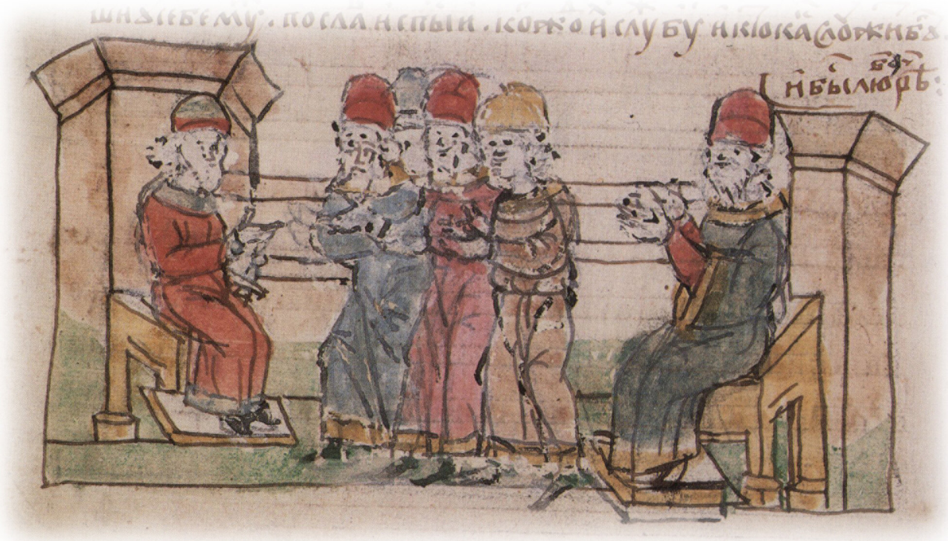 "Реша бояре и старци: «Веси, княже, яко своего никто же не хулит, но хвалит. Аще хощеши испытати гораздо, то имаши у себе мужи; послав, испытай когождо их службу, и кто как служит Богу» ...И избраша мудры и смыслены числом 10, и реша им: «Идете первое в Болгары и испытайте веру их»".