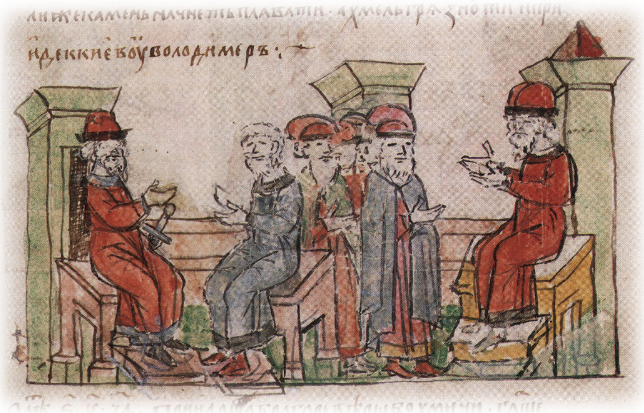 Совет Владимира Святославича с Добрыней после осмотра болгарских пленников; заключение Владимиром мира с болгарами