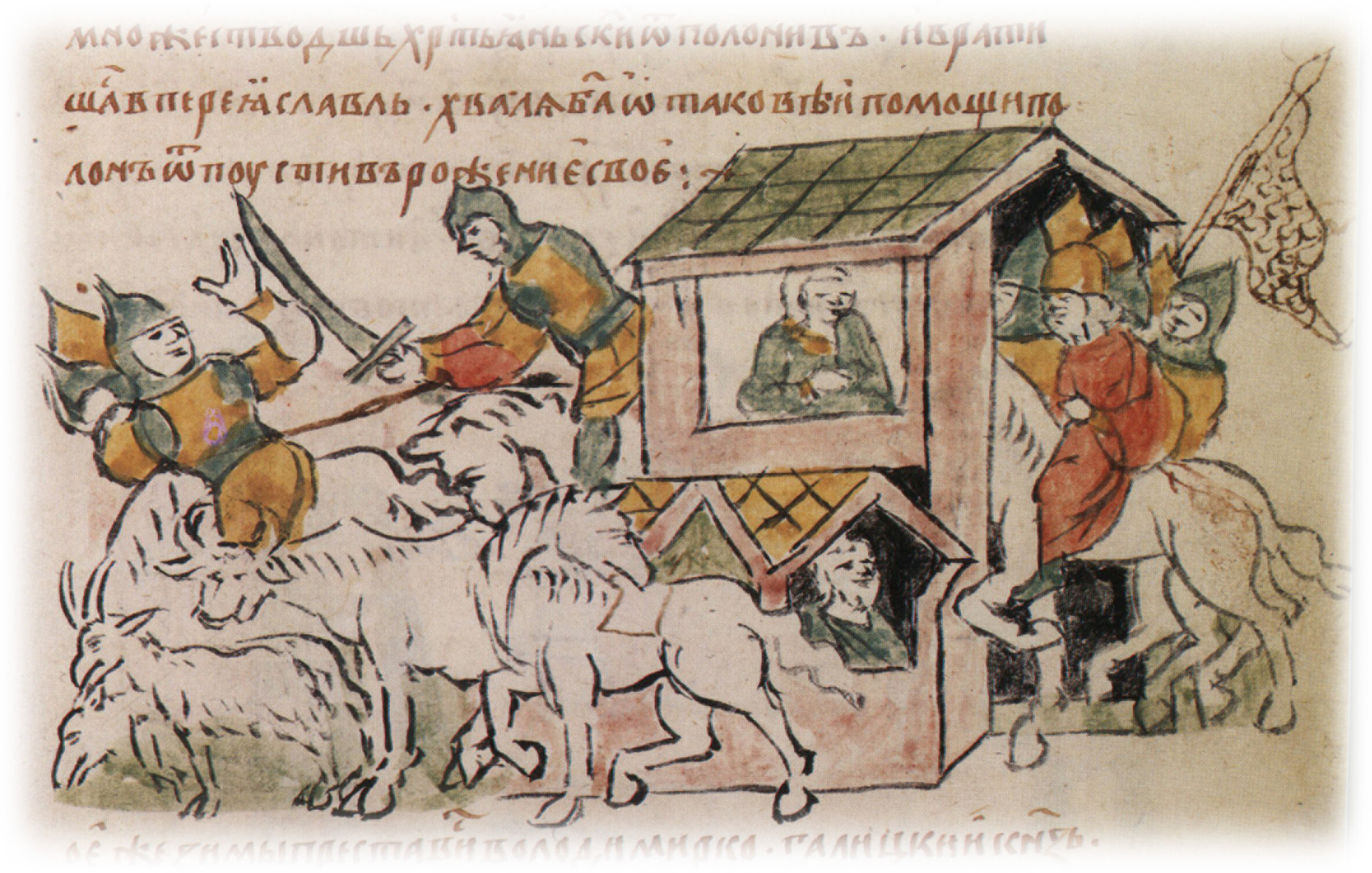 "Тогды же Мстиславу Изяславичю поможе Бог на половци — самех прогна, и вежи их взя, и скоты, и кони их зая, и множество душь христьянских отполонив...".