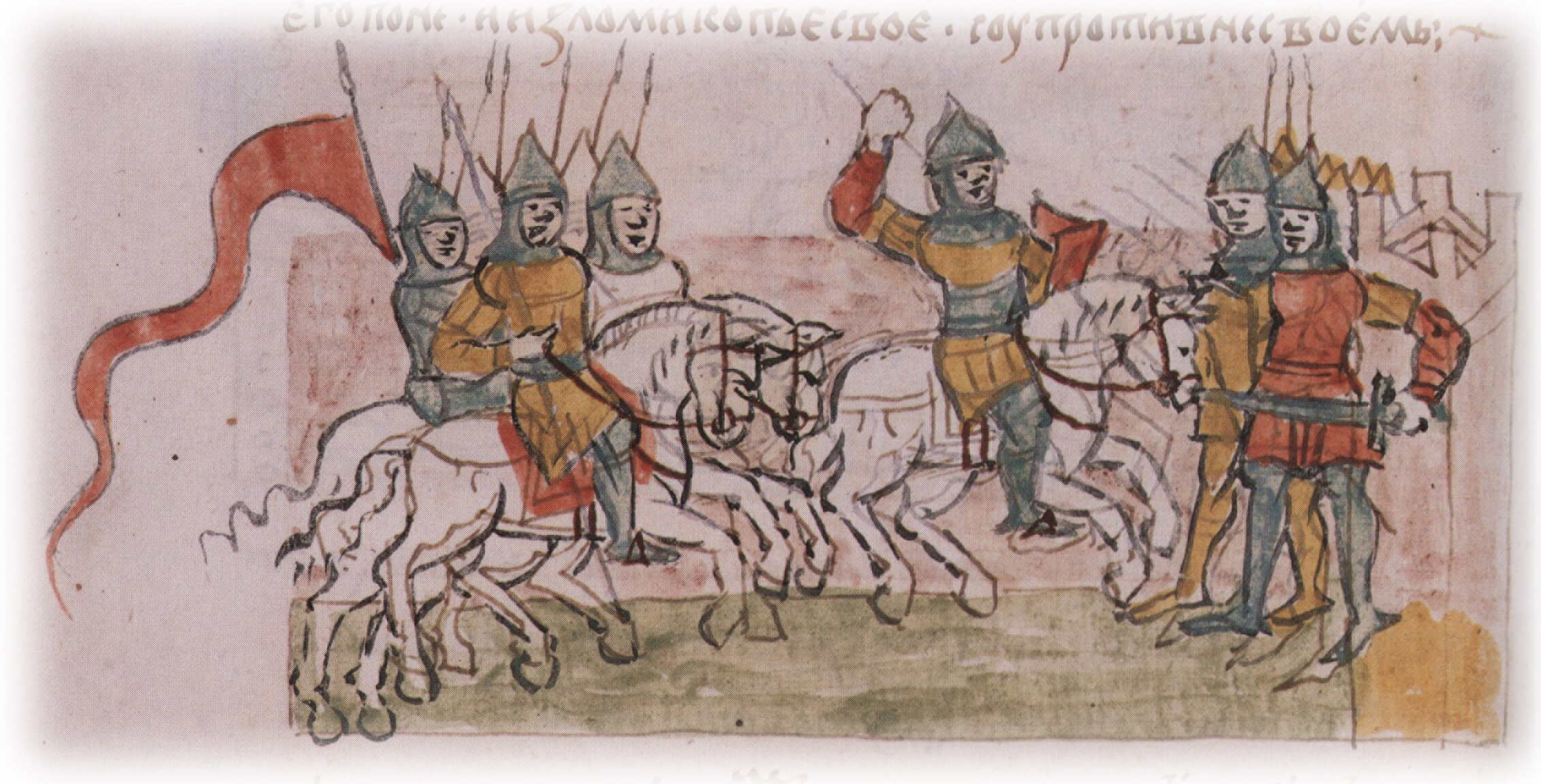 "...и пешцем вышедшим из города и стреляющимся с ними... Вьеха мреже всех в противный и дружина его по нем, и изломи копье свое супротивне своемь".