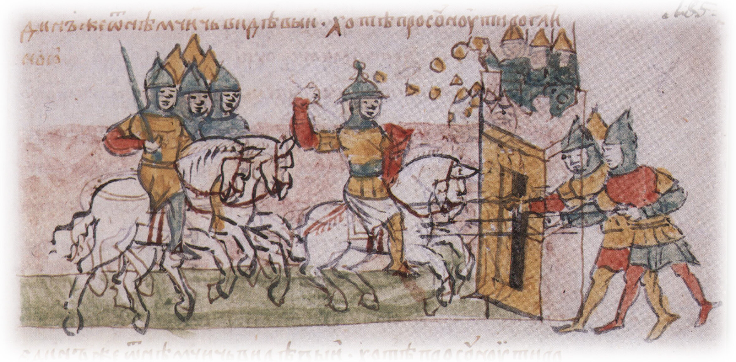 "...дружине не ведущим его, токмо от меньших детьскых два видеша князя своего, в велику беду впадша... А с города камение яко дожд метаху на нь".
