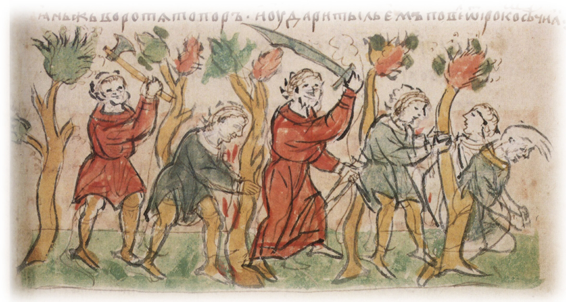 Расправа Яна Вышатича и его отровков в лесу под Белоозером со смердами, присоединившимися к кудесникам-волхвам