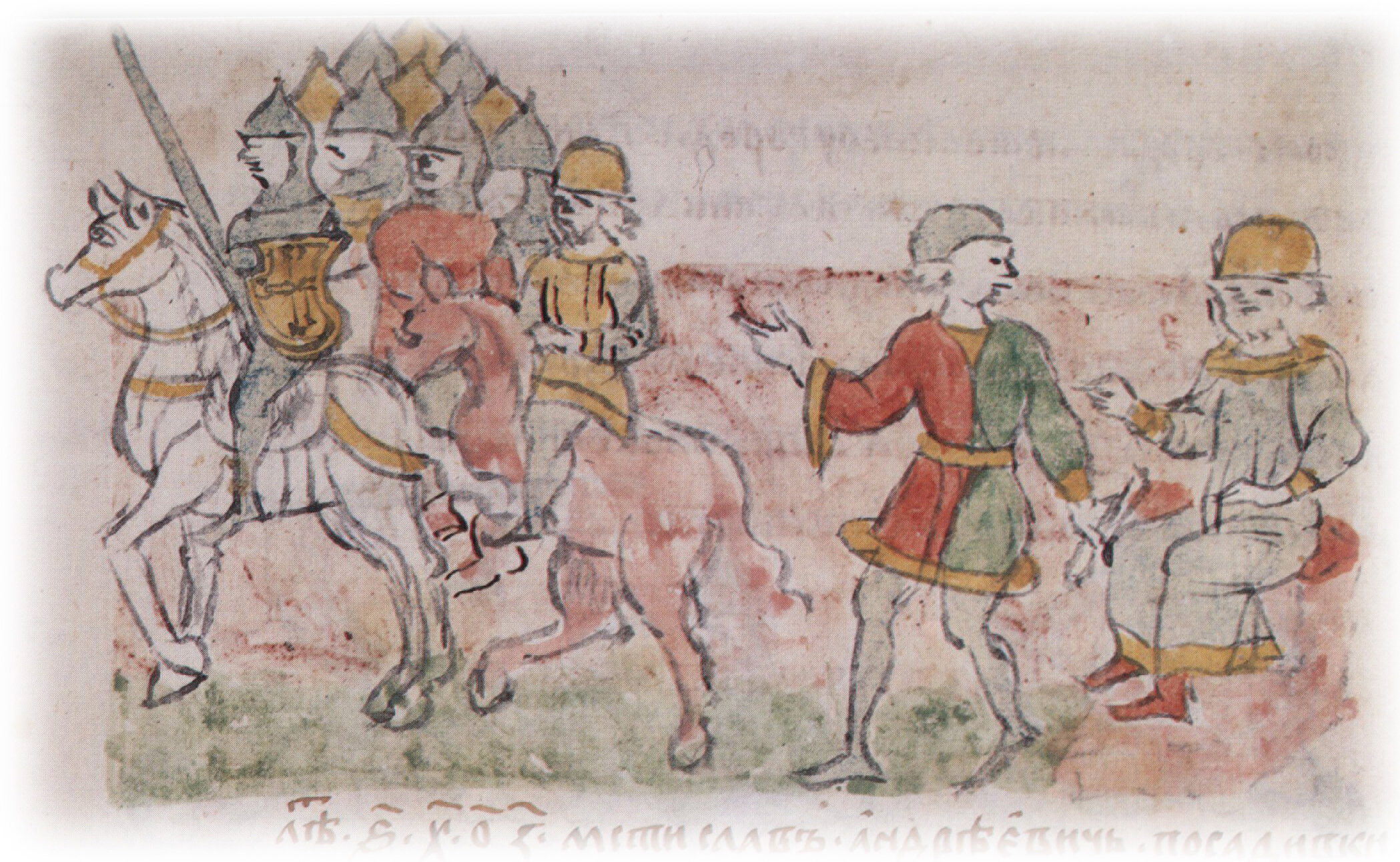 "Мстислав же Андреевич посади в Киеве стрыя своего Глеба, а сам возвратися к Володи-мирю со дружиною своею".