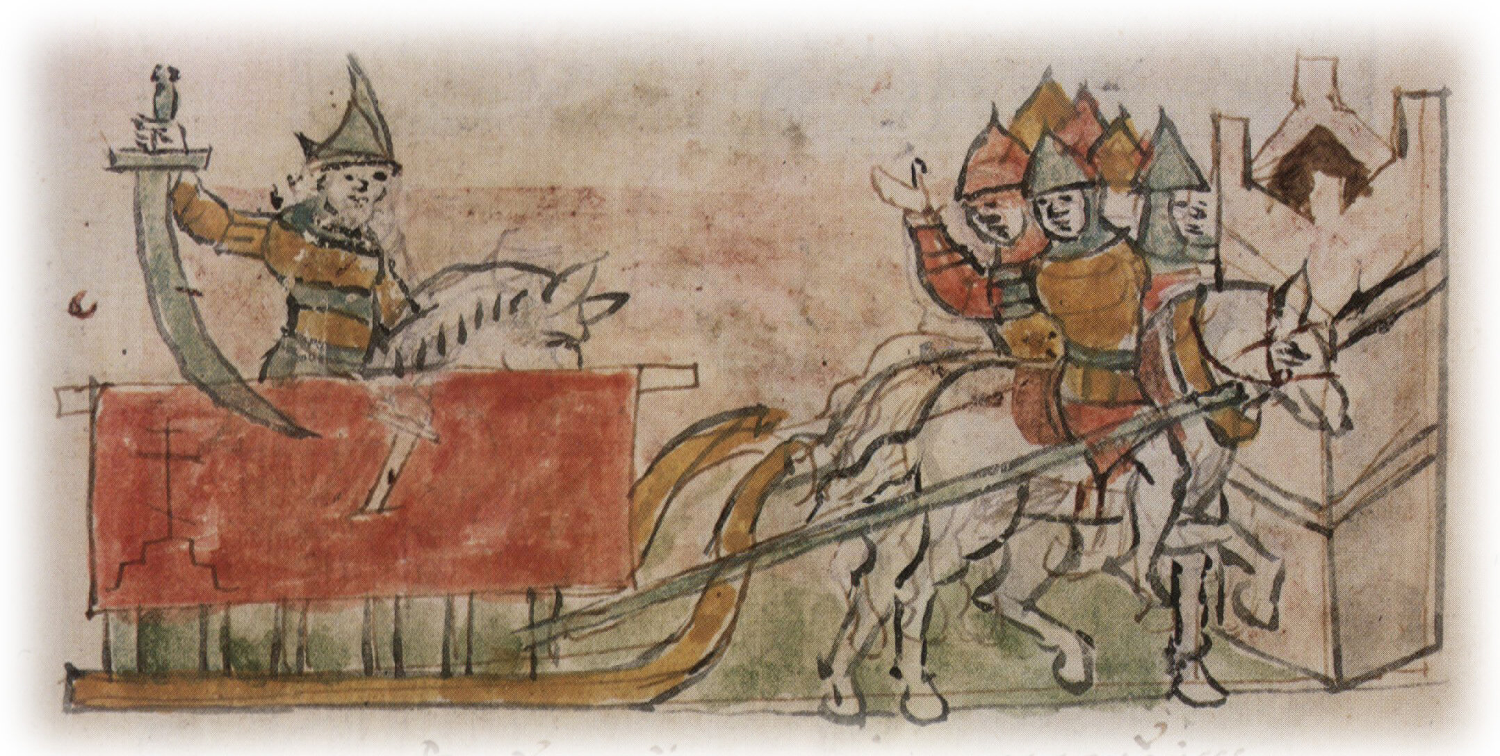 Гибель Ярополка Изяславича Волынского, пронзенного на возу саблей всадником Нерадецем на пути к Звенигороду.