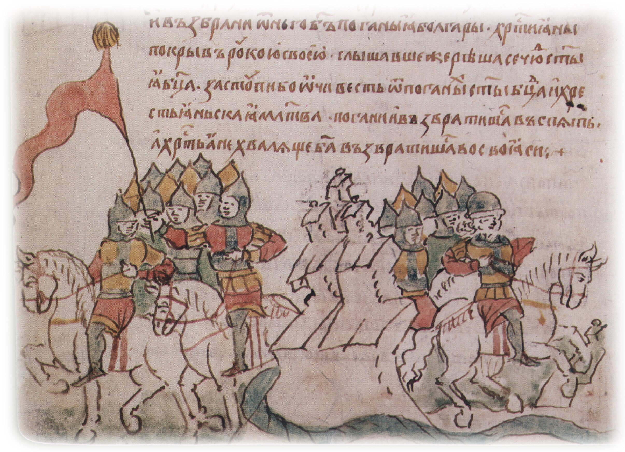 "Слышавше болгари в мале дружине Мстислава пришедша... и доспеша вборзе и поехаша по них... Слышавше же реша: «Заступиша бо очи весть от поганых Святыя Богородица и хрестьянская молитва». Испании възвратишася въепять, а христьане, хваляще Бога, взратишася восвояси".