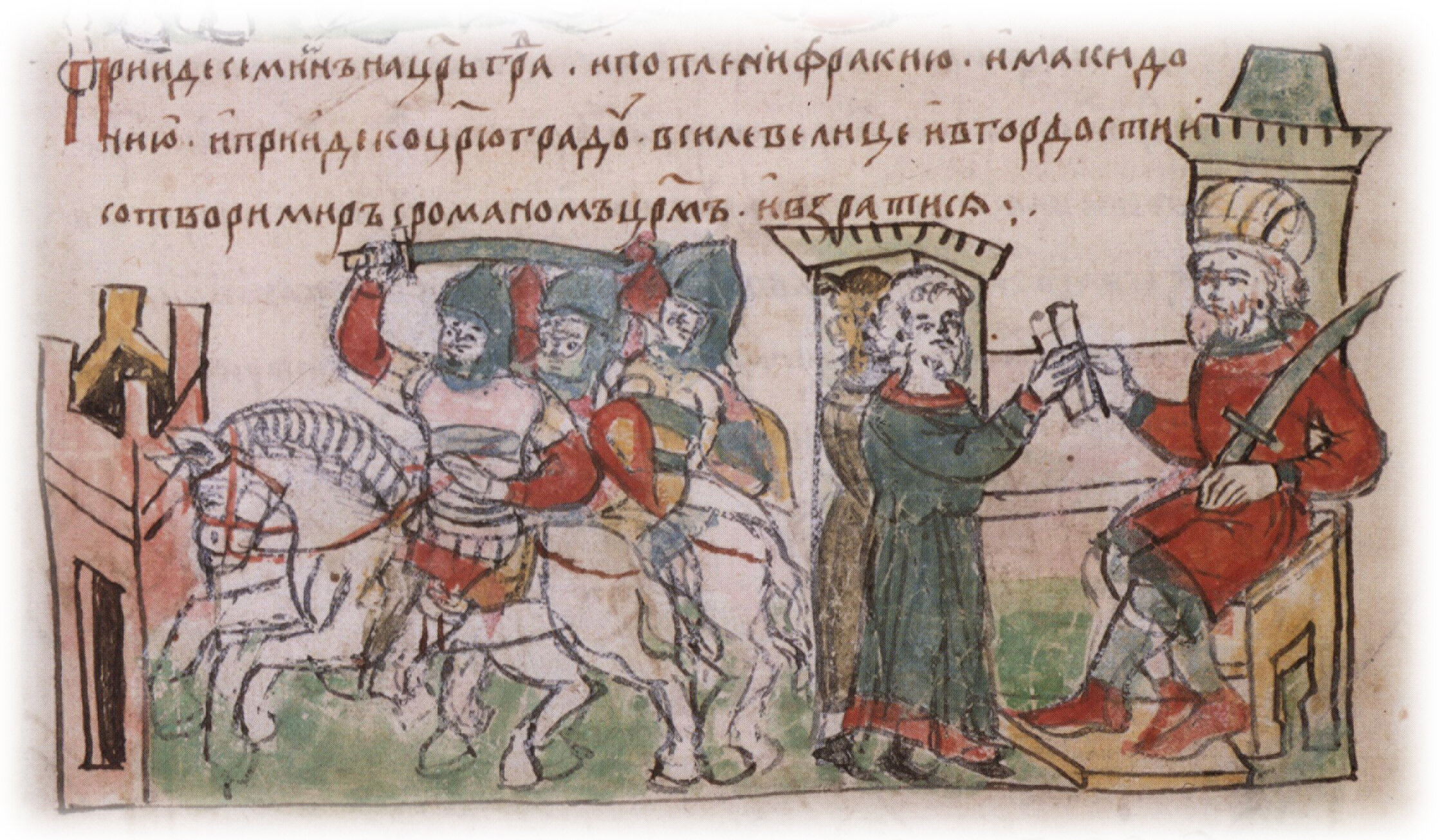 В лето 6437. "Прииде Семион на Царьград, и поплени Фракию и Макидонию, и прииде ко Царюграду в силе велице и в гордости, и сотвори мир с Романом царем...".