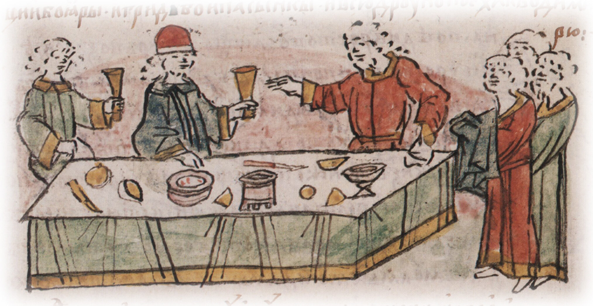 Варка киселя из болтушки и сыты в Белгороде в присутствии печенегов, пришедших с корчагами; испробование печенежскими князьями приготовленных кушаний, наличие которых в осажденном городе привело врагов в изумление и заставило снять осаду города.