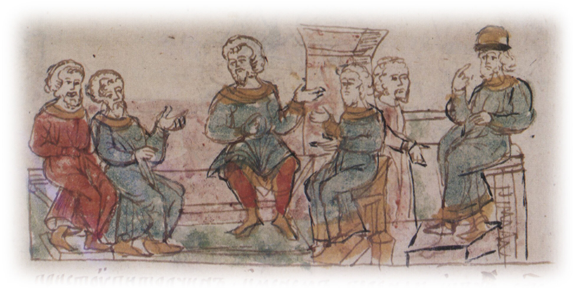 Совет Святополка Изяславича Киевского с боярами о судьбе Василька Ростиславича Тсрсбовльского, арестованного по наущению и настоянию Давыда Игоревича Волынского; согласие Давыда с решением боярского совета ослепить Василька.