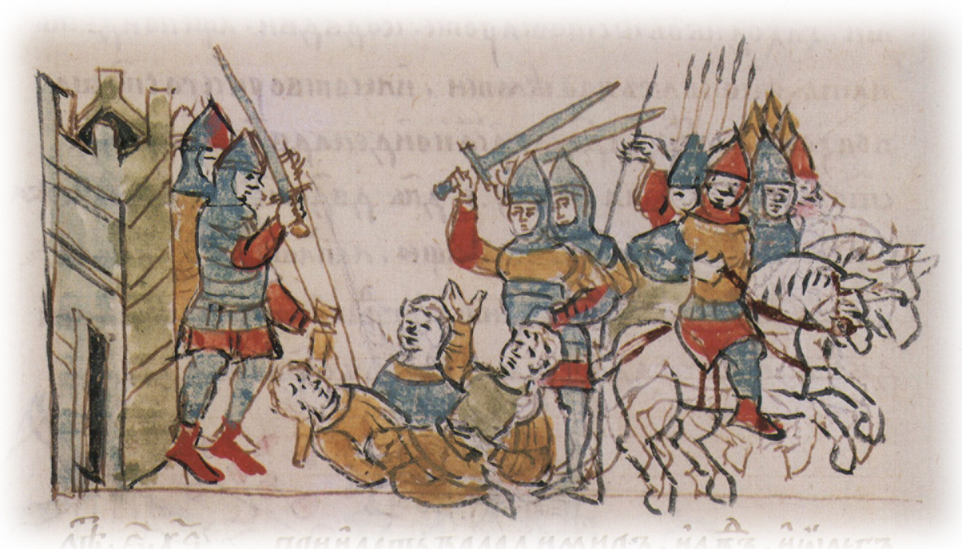 "И прииде Святоша и Путята августа 5 день, Давыдовым воем облежащим град... нападоша на них и почаша сещи. Горожане же скочиша со града... и побежа Давыд...".