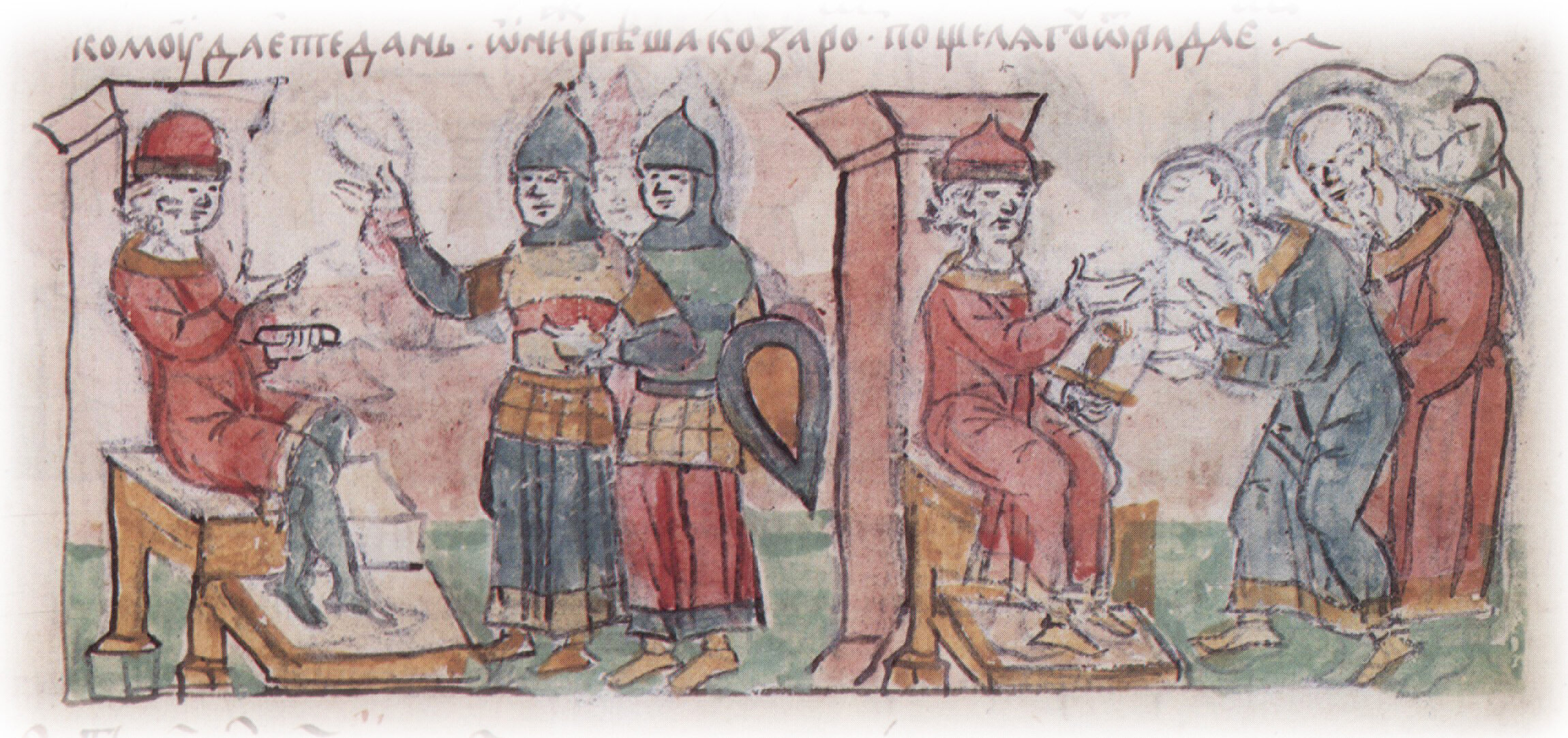 Совет Святослава Игоревича со своими воинами о новых походах; беседа Святослава Игоревича с вятичами о дани.
