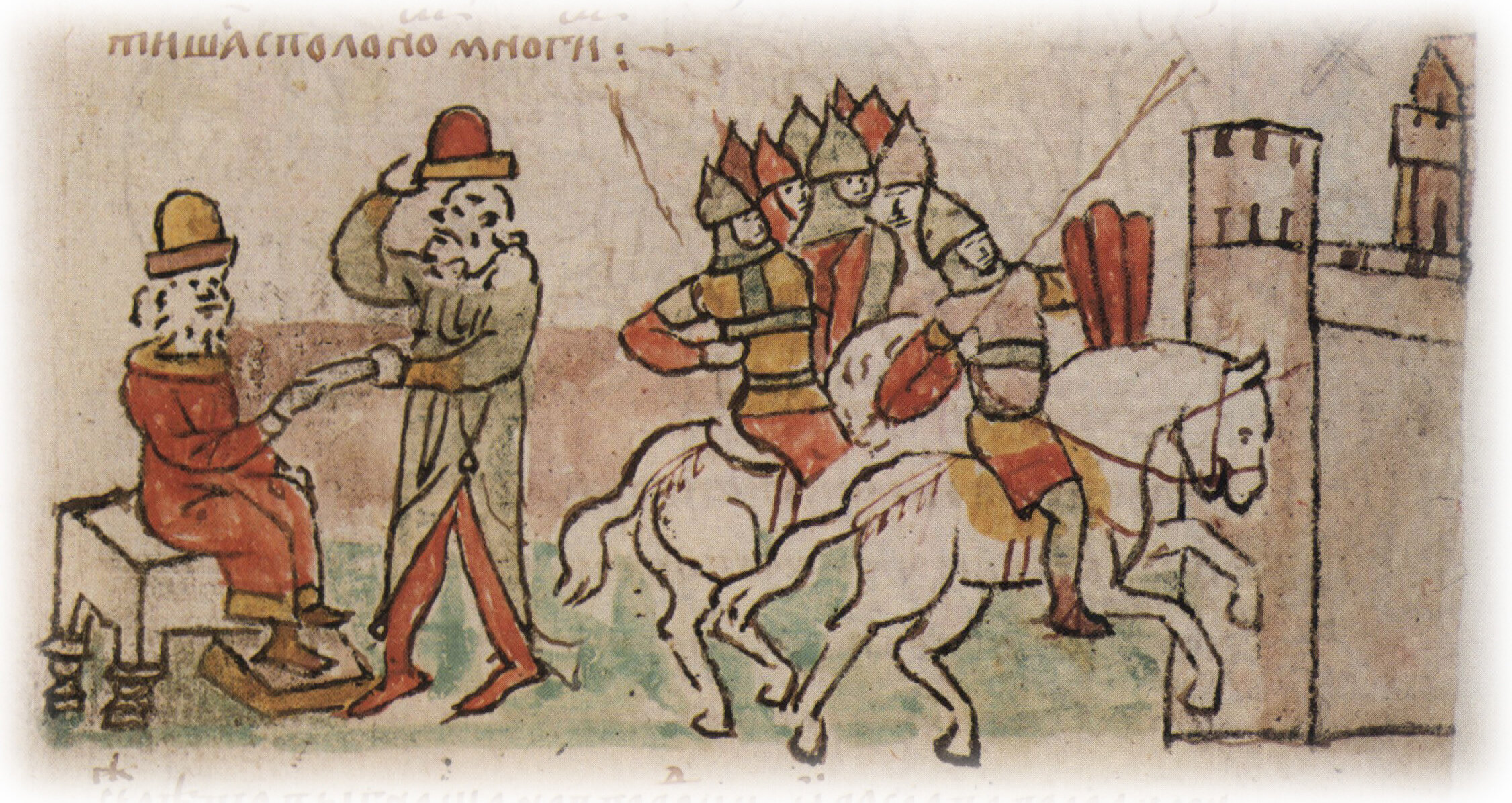 Кондаков Н. П. О миниатюрах Кенигсберского списка начальной летописи // Радзивиловская, или Кенигсбергская, летопись. СПб., 1902. Т. 2. Статьи о тексте и миниатюрах летописи. с. 121—122; Рыбаков Б. А. “Слово о полку Игореве” и его современники. М., 1971. с. 22, 23, 198, 269; Рыбаков Б. А. “Слово о полку Игореве” и его современники. М., 1971. V с. 233—234; Рыбаков Б. А. Петр Бориславич. Поиск автора “Слова о полку Игореве”. М., 1991. с. 144—145; Белоброва О. А. Этикетный мотив в древнерусской миниатюре XV в. // Исследования по древней и новой литературе: 80-летию академика Д. С. Лихачева посвящается. Л., 1987. С. 25—31. с. 26—27.