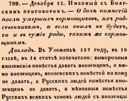 Закон № 789. 1679 год. 12 декабря (22 декабря). Указ о передаче поместий кормовщиков их семьям и родственникам.