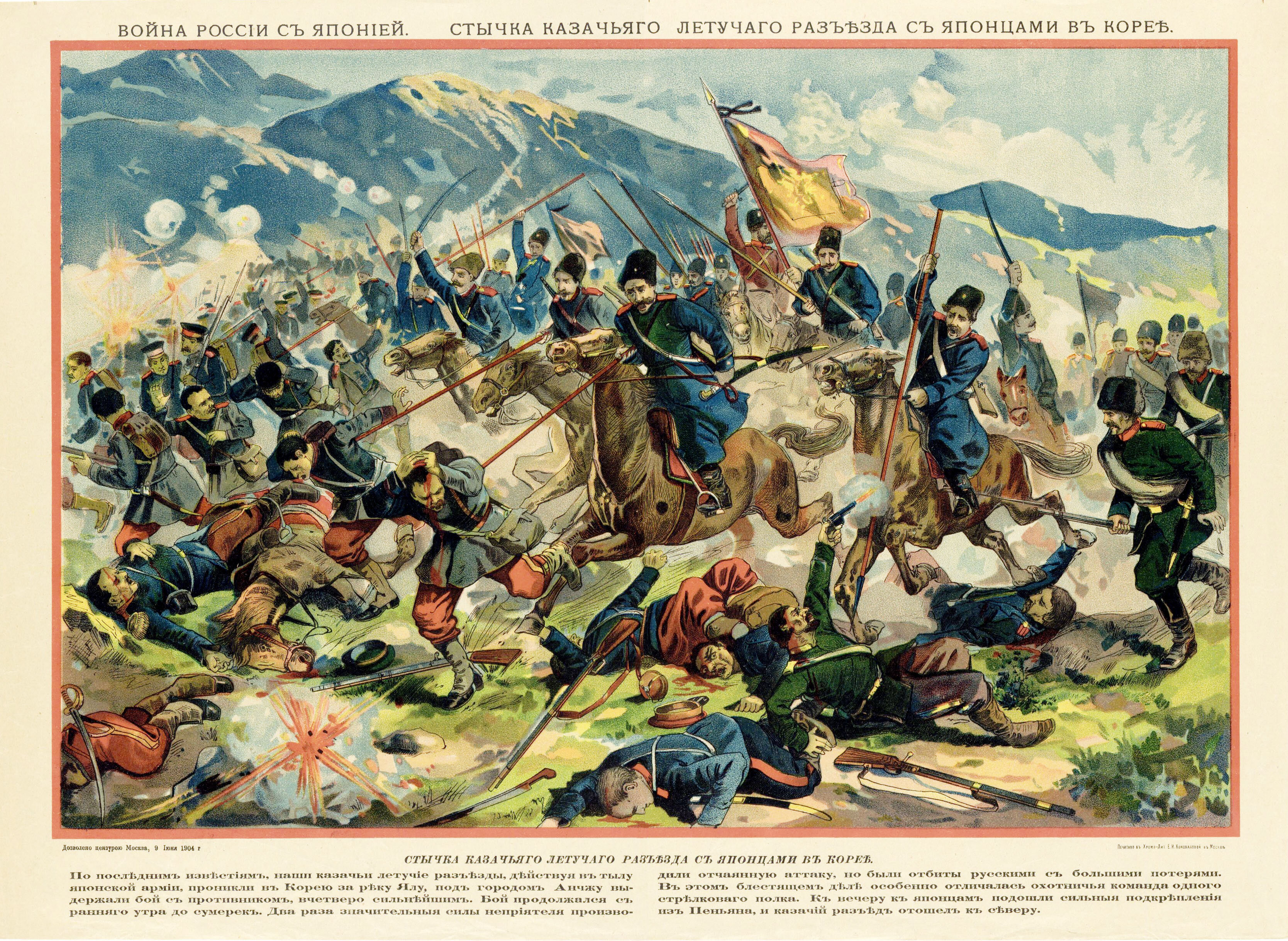 Война России с Японией. Стычка казачьего летучего разъезда с японцами в Корее.