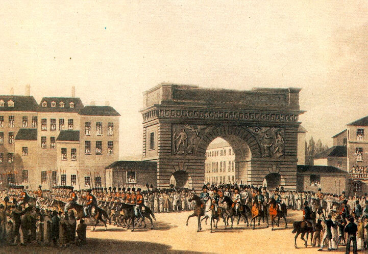 Александр I (1777—1825), император всероссийский, Барклай-де-Толли (1761 —1818), российский полководец, генерал-фельдмаршал, Фридрих Вильгельм III (1770—1840), король Пруссии