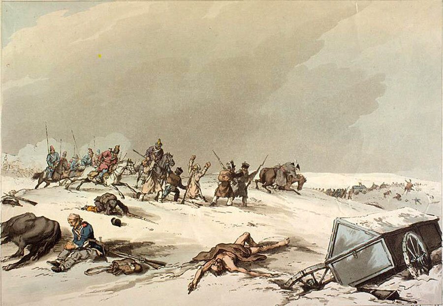 Русские казаки перехватывают отступающую из Москвы Великую армию в 1812 году.