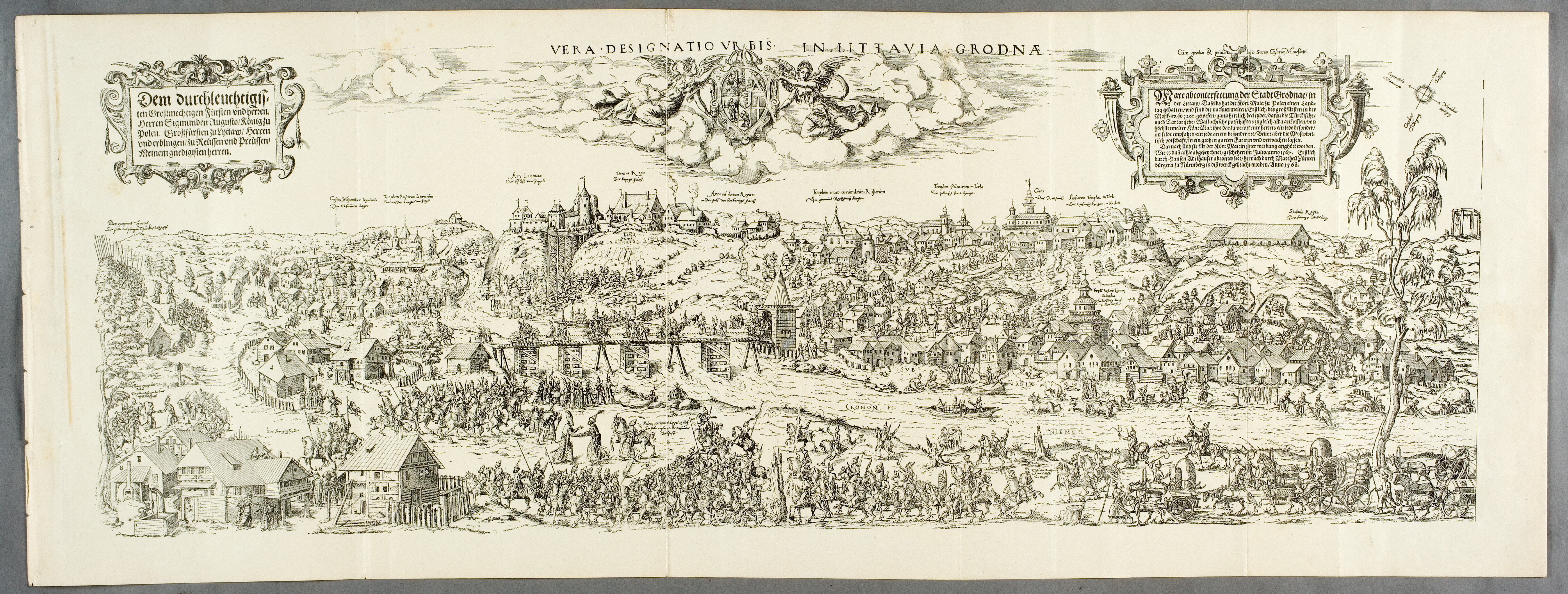 Гравюра Цюндта, выполненная на медном листе размером 36 на 102 сантиметра показывает Гродно во время приготовлений к Люблинской унии. На первом плане маршал Волович приветствует посольство царя Ивана Грозного. Вдали открывается панорама города. Ее нарисовал в июле 1568 года очевидец, Ганс Адельгаузер. А Матей Цюндт (1498-1572) перенёс в форму гравюры.