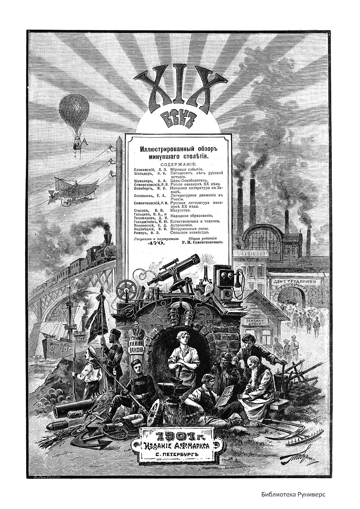 Обложка издания: Иллюстрированный обзор минувшего столетия. — СПб.: Издание А.Ф. Маркса, 1901.