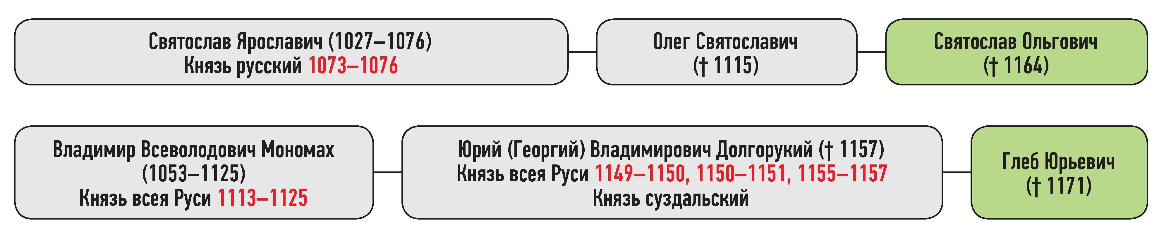 Святослав Ольгович — сын Олега Святославича, Глеб Юрьевич — сын Юрия Владимировича