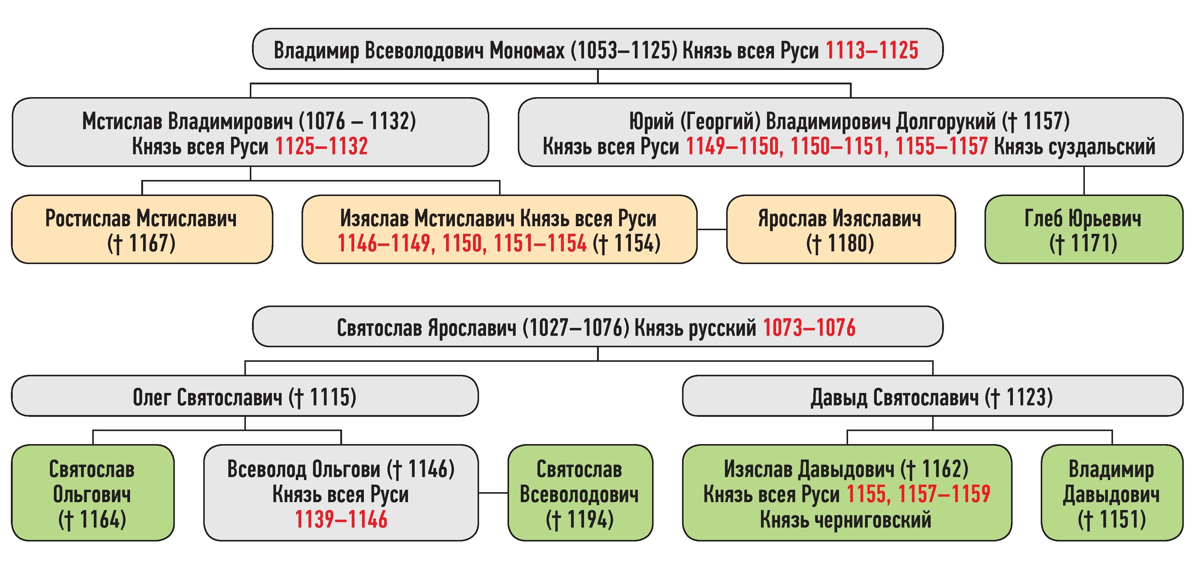 Генеалогическая схема к усобице князя Изяслава Мстиславича и князей Владимира Давыдовича, Изяслава Давыдовича и Святослава Ольговича в 1147 г.